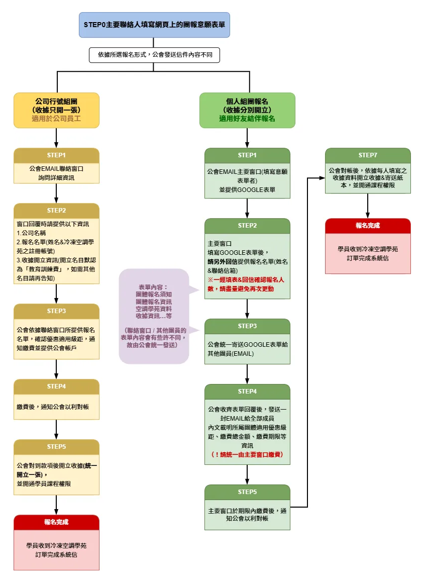 【團體報名僅於本會完成收款並確認後始成立。有關報名團體個成員間之費用收取及繳納方式,非屬本會管理或責任範圍。】